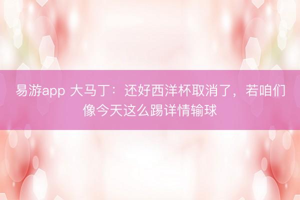易游app 大马丁:还好西洋杯取消了,若咱们像今天这么踢详情输球