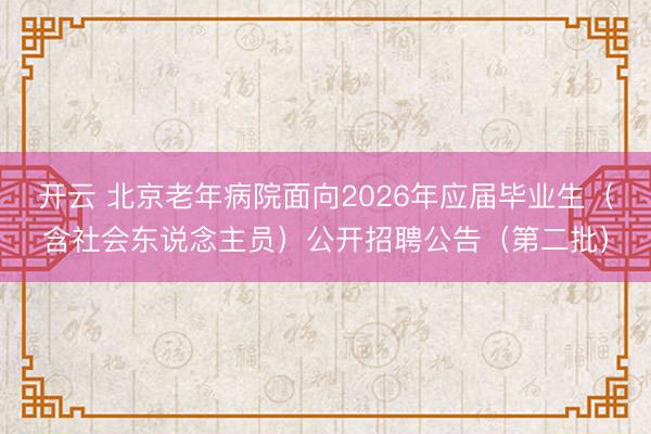 开云 北京老年病院面向2026年应届毕业生(含社会东说念主员)公开招聘公告(第二批)