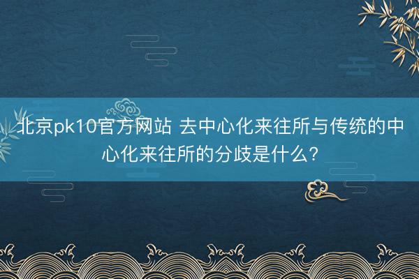 北京pk10官方网站 去中心化来往所与传统的中心化来往所的分歧是什么?
