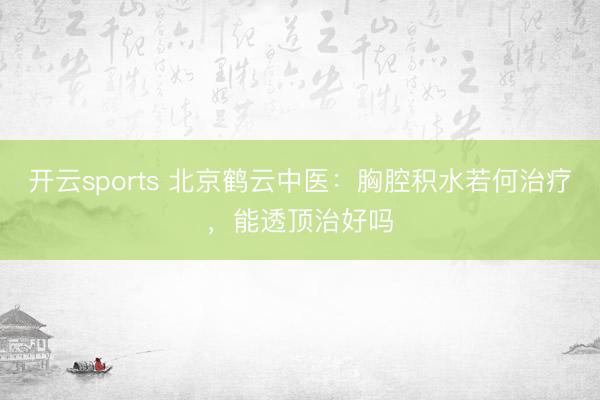 开云sports 北京鹤云中医:胸腔积水若何治疗,能透顶治好吗
