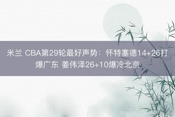 米兰 CBA第29轮最好声势:怀特塞德14+26打爆广东 姜伟泽26+10爆冷北京