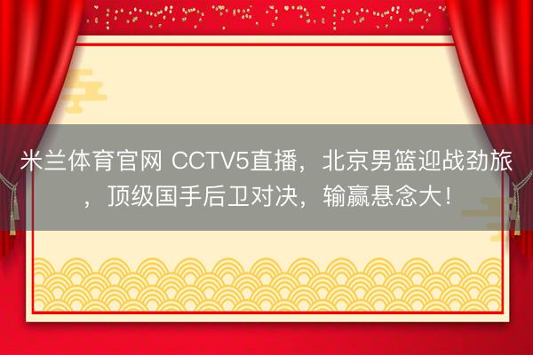米兰体育官网 CCTV5直播,北京男篮迎战劲旅,顶级国手后卫对决,输赢悬念大!
