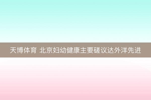 天博体育 北京妇幼健康主要磋议达外洋先进