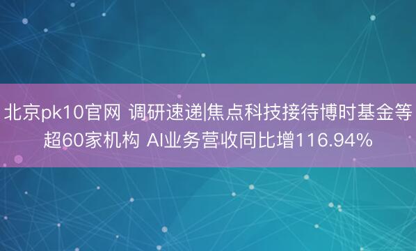北京pk10官网 调研速递|焦点科技接待博时基金等超60家机构 AI业务营收同比增116.94%
