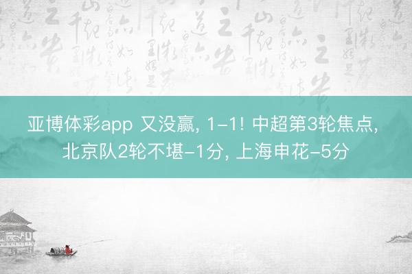 - 亚博体彩app 又没赢, 1-1! 中超第3轮焦点, 北京队2轮不堪-1分, 上海申花-5分