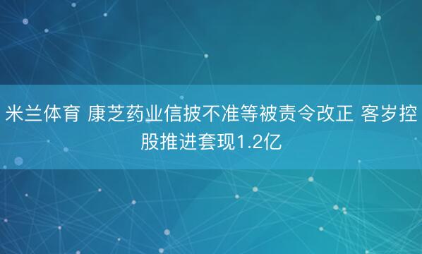 米兰体育 康芝药业信披不准等被责令改正 客岁控股推进套现1.2亿