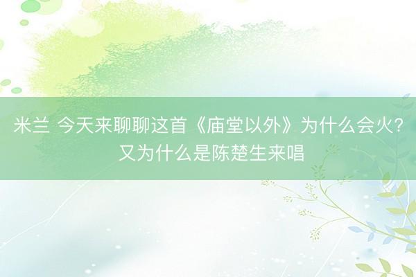 米兰 今天来聊聊这首《庙堂以外》为什么会火? 又为什么是陈楚生来唱