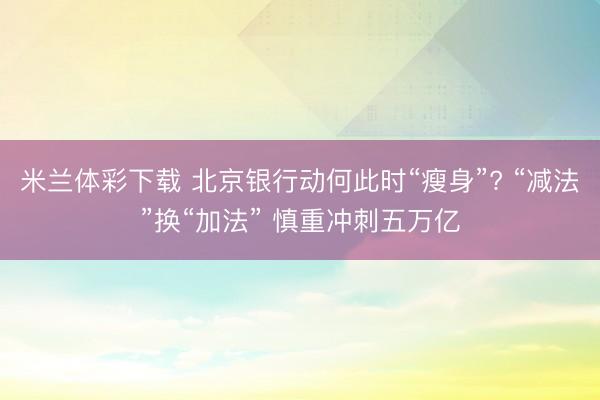 米兰体彩下载 北京银行动何此时“瘦身”? “减法”换“加法” 慎重冲刺五万亿