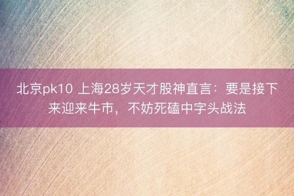 北京pk10 上海28岁天才股神直言:要是接下来迎来牛市,不妨死磕中字头战法