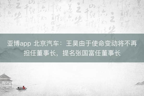 亚博app 北京汽车:王昊由于使命变动将不再担任董事长,提名张国富任董事长
