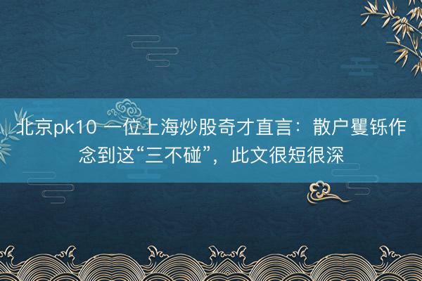 北京pk10 一位上海炒股奇才直言:散户矍铄作念到这“三不碰”,此文很短很深