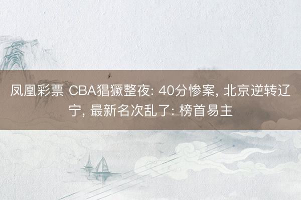 凤凰彩票 CBA猖獗整夜: 40分惨案, 北京逆转辽宁, 最新名次乱了: 榜首易主