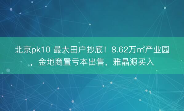 北京pk10 最大田户抄底!8.62万㎡产业园,金地商置亏本出售,雅晶源买入