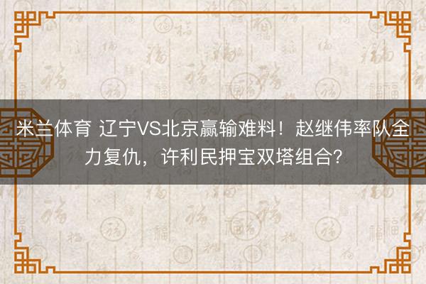 米兰体育 辽宁VS北京赢输难料!赵继伟率队全力复仇,许利民押宝双塔组合?