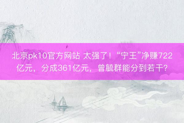 北京pk10官方网站 太强了!“宁王”净赚722亿元,分成361亿元,曾毓群能分到若干?