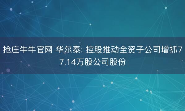 抢庄牛牛官网 华尔泰: 控股推动全资子公司增抓77.14万股公司股份