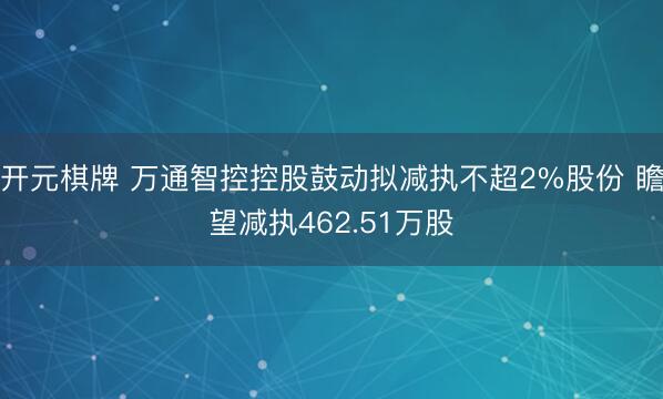 开元棋牌 万通智控控股鼓动拟减执不超2%股份 瞻望减执462.51万股
