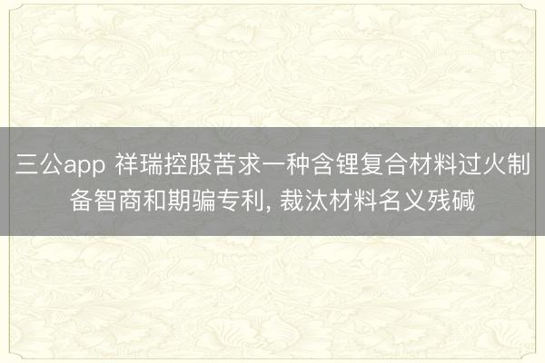 三公app 祥瑞控股苦求一种含锂复合材料过火制备智商和期骗专利, 裁汰材料名义残碱