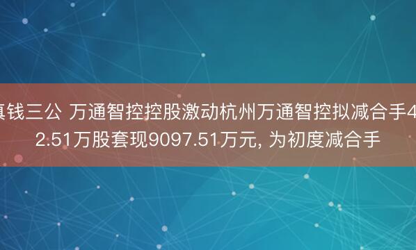 真钱三公 万通智控控股激动杭州万通智控拟减合手462.51万股套现9097.51万元, 为初度减合手