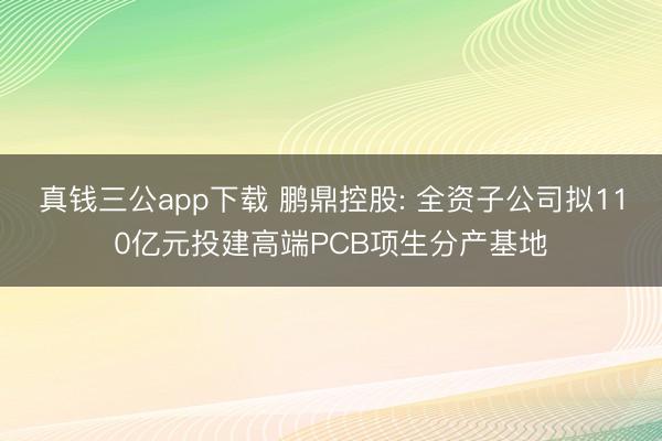 真钱三公app下载 鹏鼎控股: 全资子公司拟110亿元投建高端PCB项生分产基地