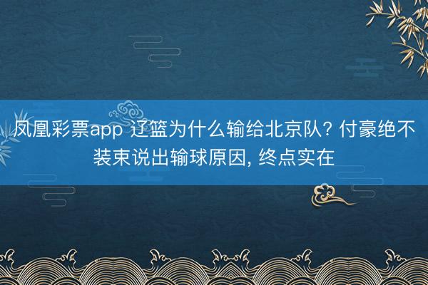 凤凰彩票app 辽篮为什么输给北京队? 付豪绝不装束说出输球原因, 终点实在