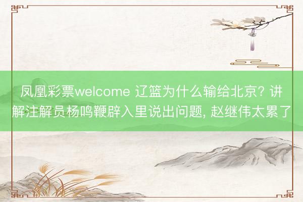 凤凰彩票welcome 辽篮为什么输给北京? 讲解注解员杨鸣鞭辟入里说出问题, 赵继伟太累了