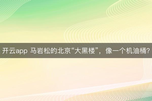 开云app 马岩松的北京“大黑楼”,像一个机油桶?