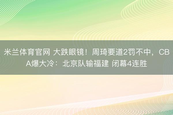 米兰体育官网 大跌眼镜!周琦要道2罚不中,CBA爆大冷:北京队输福建 闭幕4连胜