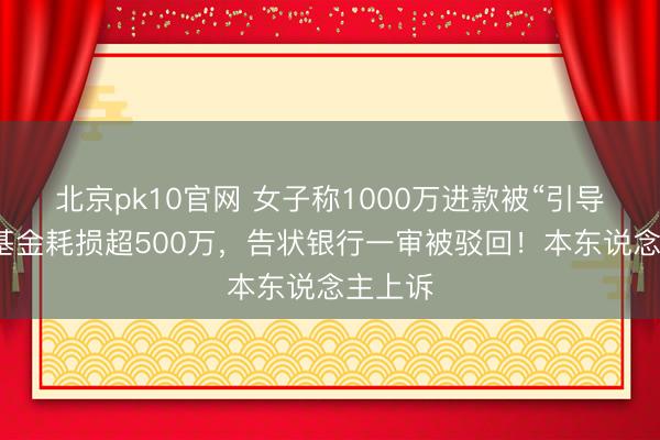 北京pk10官网 女子称1000万进款被“引导”购买基金耗损超500万,告状银行一审被驳回!本东说念主上诉