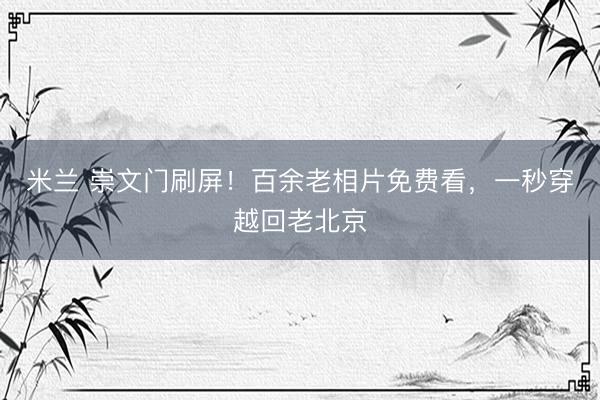 米兰 崇文门刷屏!百余老相片免费看,一秒穿越回老北京