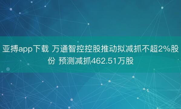 亚搏app下载 万通智控控股推动拟减抓不超2%股份 预测减抓462.51万股