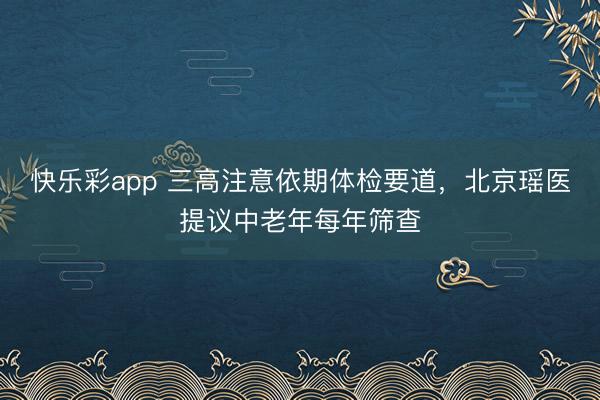 快乐彩app 三高注意依期体检要道,北京瑶医提议中老年每年筛查