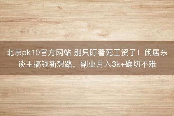 北京pk10官方网站 别只盯着死工资了!闲居东谈主搞钱新想路,副业月入3k+确切不难
