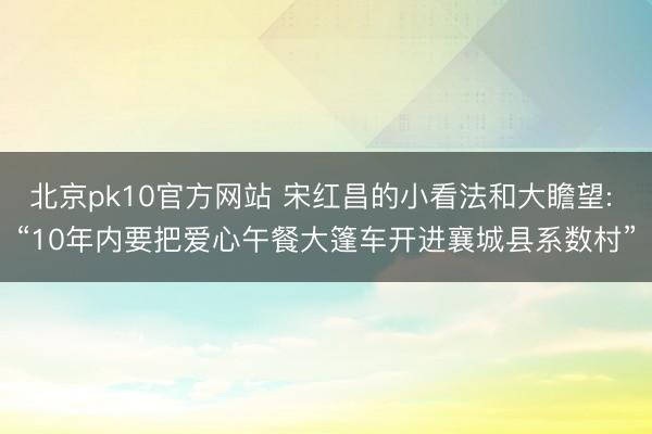 北京pk10官方网站 宋红昌的小看法和大瞻望: “10年内要把爱心午餐大篷车开进襄城县系数村”