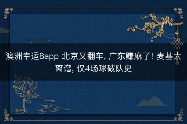澳洲幸运8app 北京又翻车, 广东赚麻了! 麦基太离谱, 仅4场球破队史