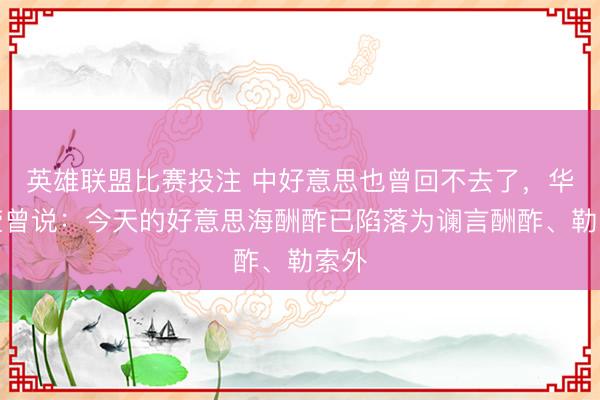 英雄联盟比赛投注 中好意思也曾回不去了,华春莹曾说:今天的好意思海酬酢已陷落为谰言酬酢、勒索外