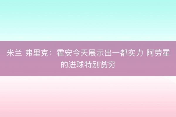 米兰 弗里克:霍安今天展示出一都实力 阿劳霍的进球特别贫穷