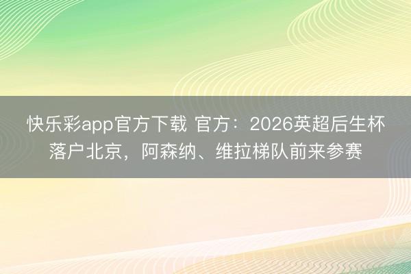 快乐彩app官方下载 官方:2026英超后生杯落户北京,阿森纳、维拉梯队前来参赛