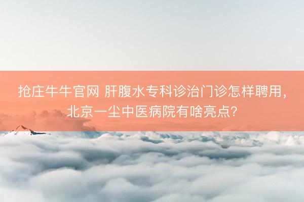 抢庄牛牛官网 肝腹水专科诊治门诊怎样聘用,北京一尘中医病院有啥亮点?