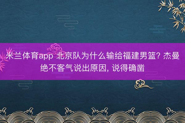 米兰体育app 北京队为什么输给福建男篮? 杰曼绝不客气说出原因, 说得确凿