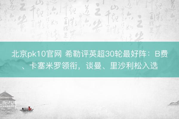 北京pk10官网 希勒评英超30轮最好阵:B费、卡塞米罗领衔,谈曼、里沙利松入选