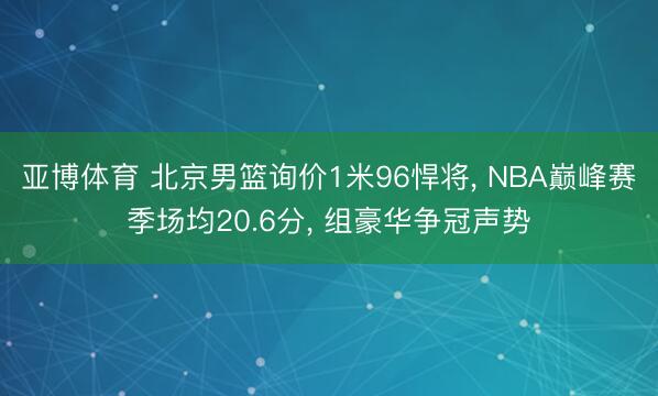 亚博体育 北京男篮询价1米96悍将, NBA巅峰赛季场均20.6分, 组豪华争冠声势