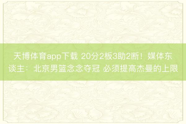 天博体育app下载 20分2板3助2断!媒体东谈主:北京男篮念念夺冠 必须提高杰曼的上限