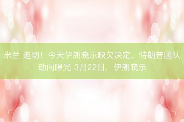 米兰 迫切!今天伊朗晓示缺欠决定,特朗普团队动向曝光 3月22日,伊朗晓示