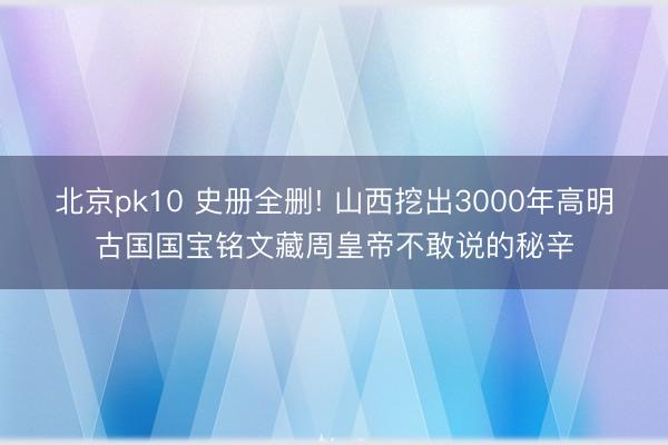 - 北京pk10 史册全删! 山西挖出3000年高明古国国宝铭文藏周皇帝不敢说的秘辛