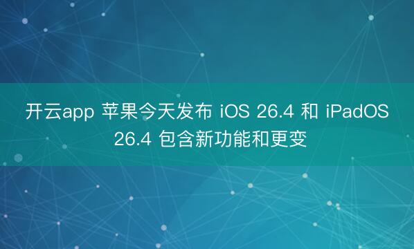 开云app 苹果今天发布 iOS 26.4 和 iPadOS 26.4 包含新功能和更变
