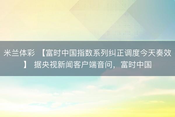 米兰体彩 【富时中国指数系列纠正调度今天奏效】 据央视新闻客户端音问,富时中国
