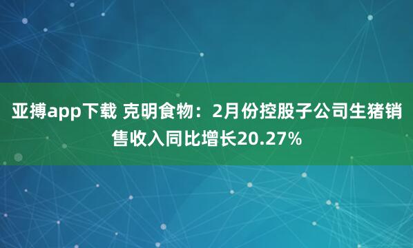 亚搏app下载 克明食物:2月份控股子公司生猪销售收入同比增长20.27%