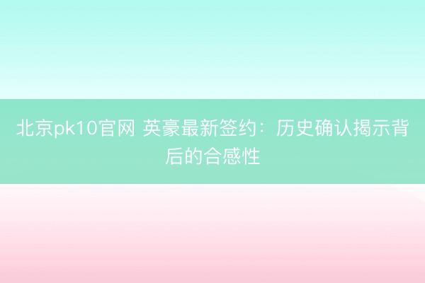 北京pk10官网 英豪最新签约:历史确认揭示背后的合感性