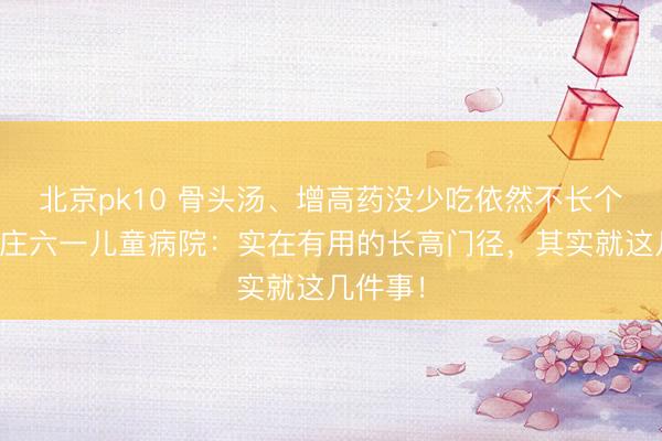 北京pk10 骨头汤、增高药没少吃依然不长个?石家庄六一儿童病院:实在有用的长高门径,其实就这几件事!